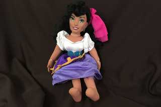 Esmeralda doll from 1995, one of the main characters from Victor Hugo's novel, The Hunchback of Notre-Dame. She is quite large at 40 cm. Her hair is still beautiful. She is from the Disney animated film, The Hunchback of Notre Dame. Made in China.