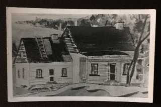 Vintage postcard from 1967. Drawing of an old Acadian or Quebecois house. No further information. Someone has written the year 1967 on it. 14 x 9 cm. Canada. Never mailed.